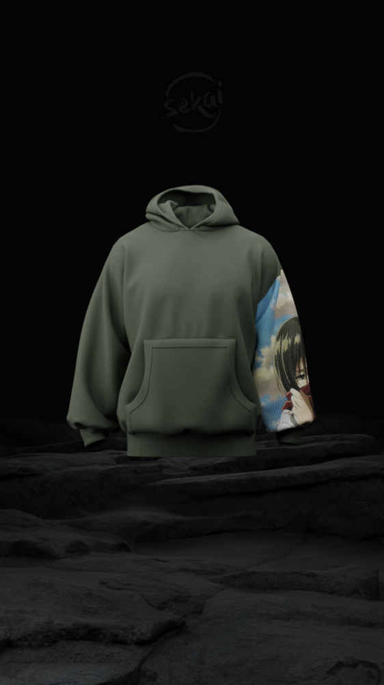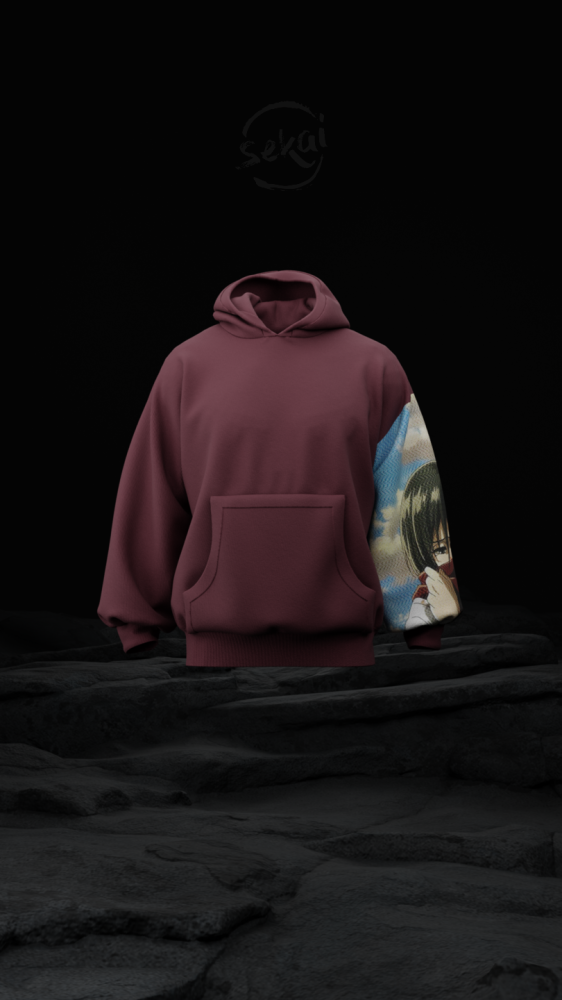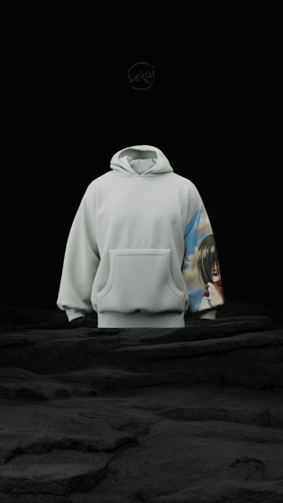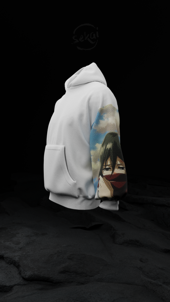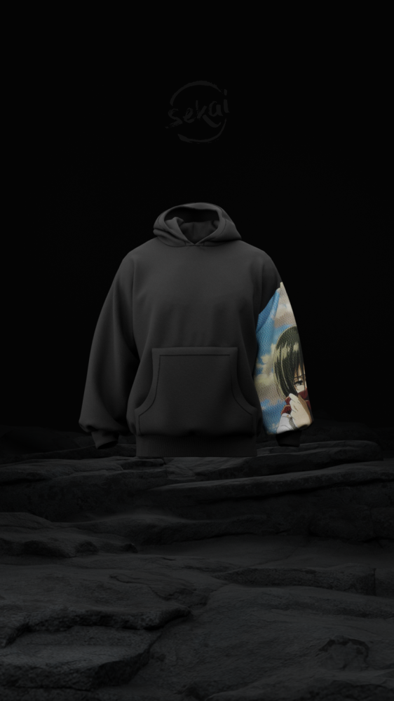 هودي انمي بتطريز للكم اليسار كامل بتصميم خاص ميكاسا متوفر بألوان ومقاسات مختلفة