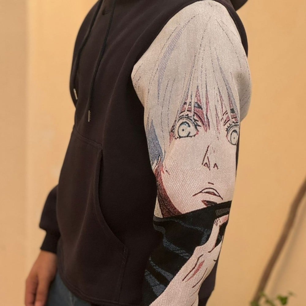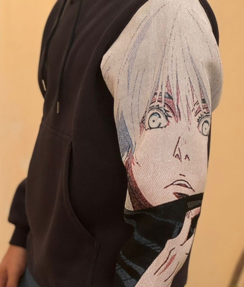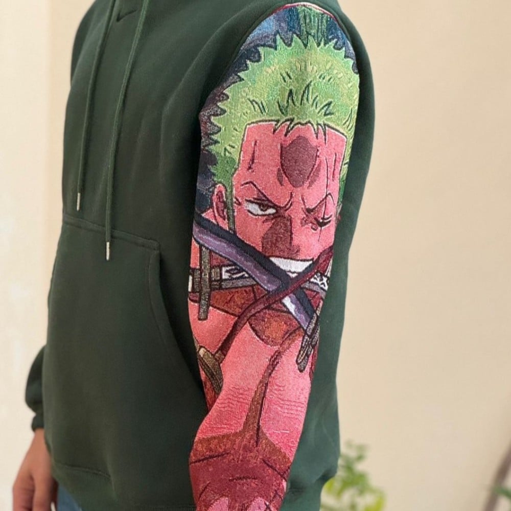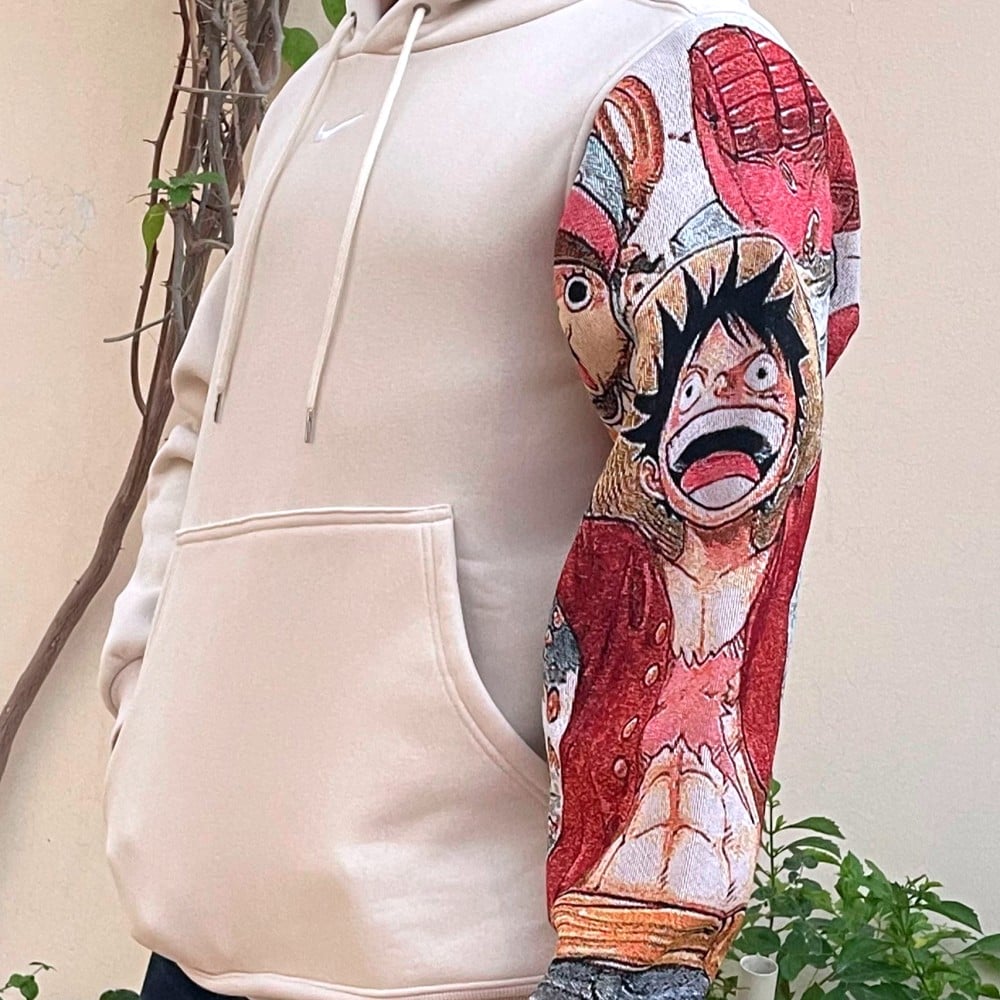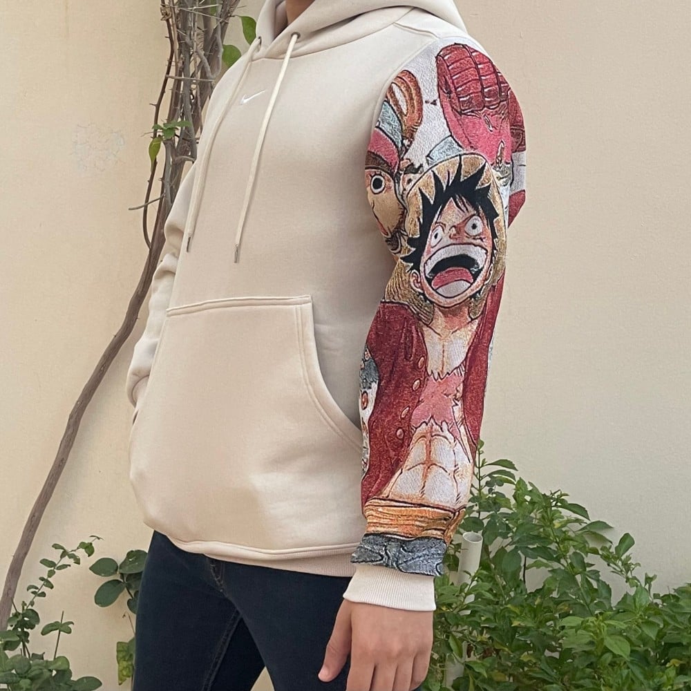 هودي نايك ثقيلة تم تعديلها واضافة اكمام تطريز بتصميم انمي مميز